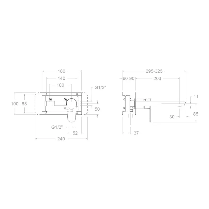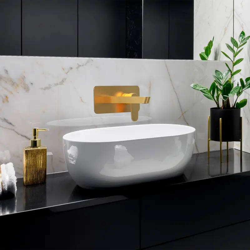 Grifo de lavabo monomando empotrado con sistema s2 ahorro ● Superficie tratada contra la cal y el sarro ● Bordes elevados que contienen el agua dentro ▶ Transforma tu baño con un lavabo elegante