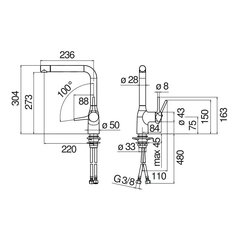 ¡Introduce tu código postal y consulta los servicios disponibles! El grifo Poalgi Nobili CU128113GTP Ambar Cepillado es la combinación perfecta de diseño elegante y funcionalidad avanzada para tu cocina. Con una altura de 304 mm y un caño giratorio personalizable hasta 180° (y adaptable a 120° o 360°), este monomando para encimera presenta una versatilidad sin igual que se ajusta a tus necesidades diarias, ya sea para cocinar o limpiar. Además, su acabado en ámbar cepillado aporta un toque de sofisticación que hará que cualquier cocina brille con estilo. Este grifo no solo es bello, también está diseñado pensando en el ahorro de recursos y el confort. Equipado con un aireador anticalcáreo y un cartucho de doble posición con limitador de caudal al 50%, contribuye al ahorro de agua sin sacrificar el rendimiento. La altura de la caída del agua, a 273 mm, garantiza un flujo cómodo y controlado para cualquier tarea. Gracias a sus flexibles inox de conexión ø 3/8, la instalación del grifo es r