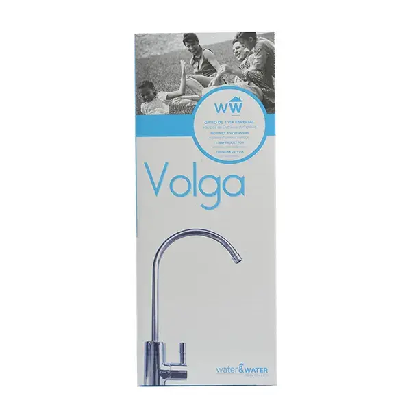 Grifo de color plateado con una vía para osmósis inversa.