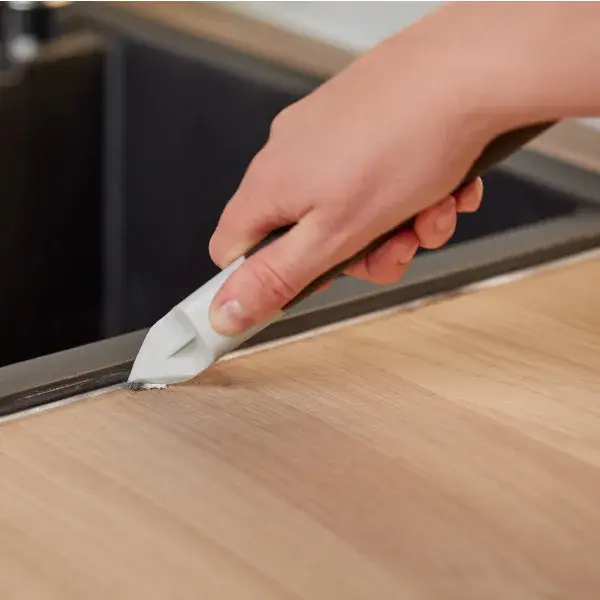 Los cabezales angulares se introducen sin cuestión bajo el sellador, resistentes y no rayan la superficie.