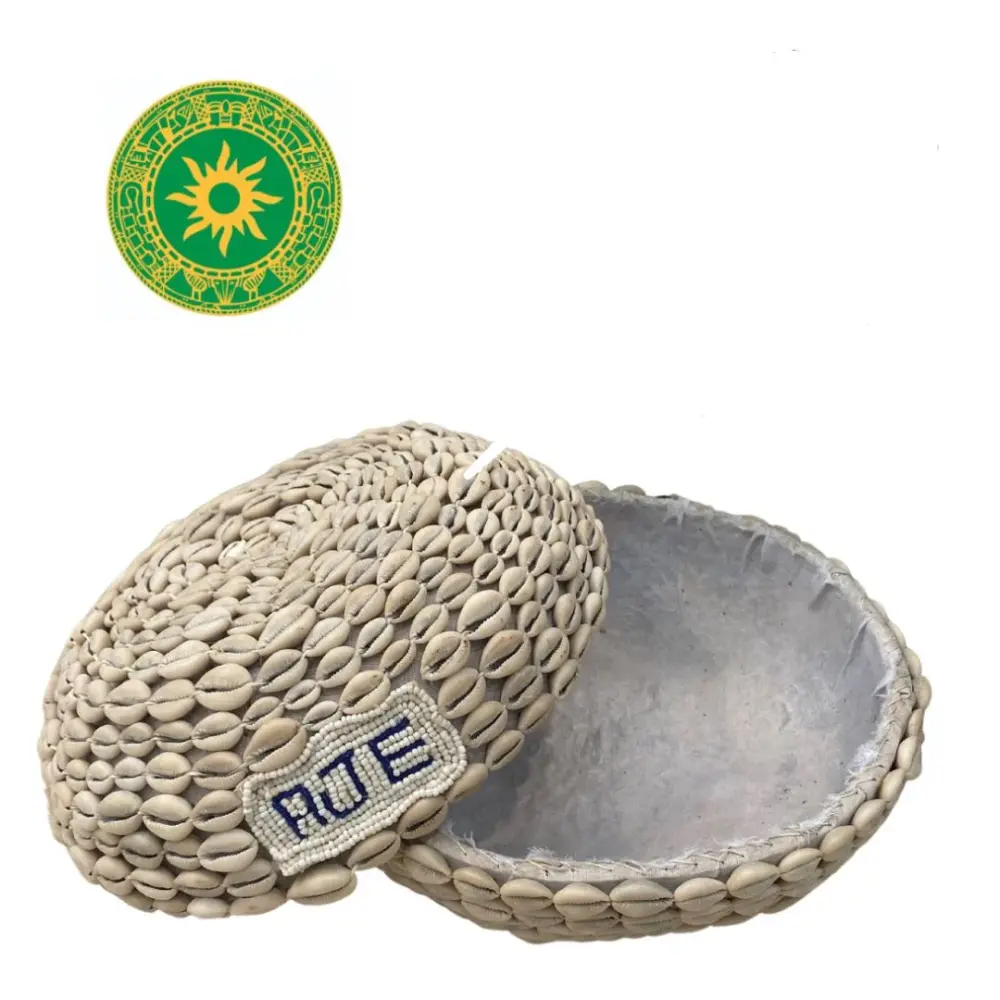 Igba Aje Forrada. Calabaza de procedencia Nigeriana, vegetal, o sea es una jicara de guira forrada en cuentas y caracoles, usada para Orisa Aje. Producto importado 100% exclusivo de artesanos practicantes de Isese.