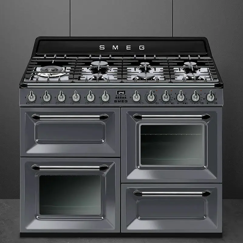 ¡Introduce tu código postal y consulta los servicios disponibles! Descubre el pináculo de la cocina con la majestuosa Cocina Smeg TR4110GR de 110 cm, una obra maestra culinaria que combina elegancia y rendimiento excepcionales. Equipada con mandos ergonómicos y un tipo de limpieza por vapor, esta cocina de gas natural te brinda la libertad de explorar tu creatividad culinaria sin preocuparte por la limpieza. Con una potencia de 8400 W y un rango de temperaturas de 50 a 260 °C, este electrodoméstico no solo destaca por su estética imponente, sino que también ofrece un rendimiento de cocina superior. El display LCD y la iluminación integrada añaden un toque vanguardista, mientras que las guías telescópicas y el encendido automático en el mando garantizan una experiencia de cocina fluida y sin complicaciones. La Cocina Smeg TR4110GR cuenta con tres hornos multifunción que te permiten explorar diversas técnicas culinarias. Además, el cajón de almacenaje proporciona un espacio adicional para org
