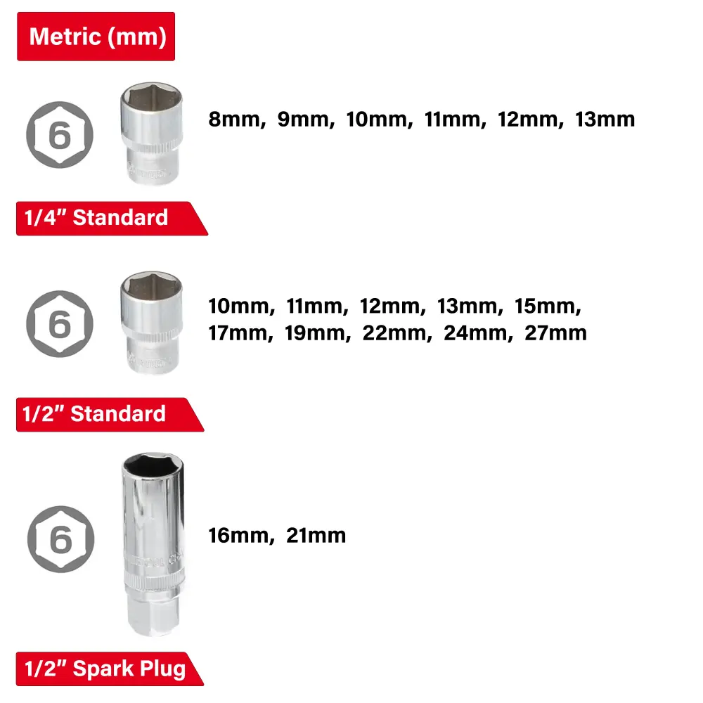 - [Vasos de 1/4”]: 8, 9, 10, 11, 12, 13 mm