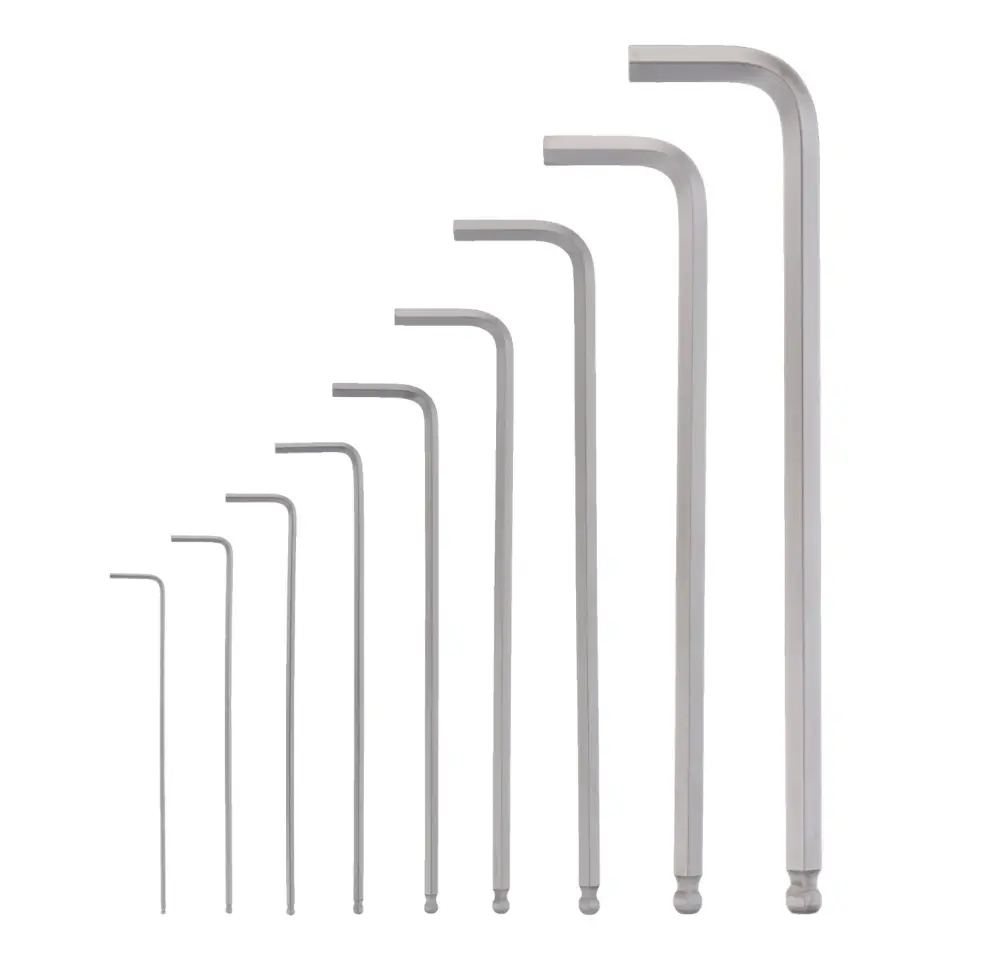- Extremo en bola (“ball end”): permite trabajar con tornillos en ángulos difíciles sin necesidad de alineación perfecta.