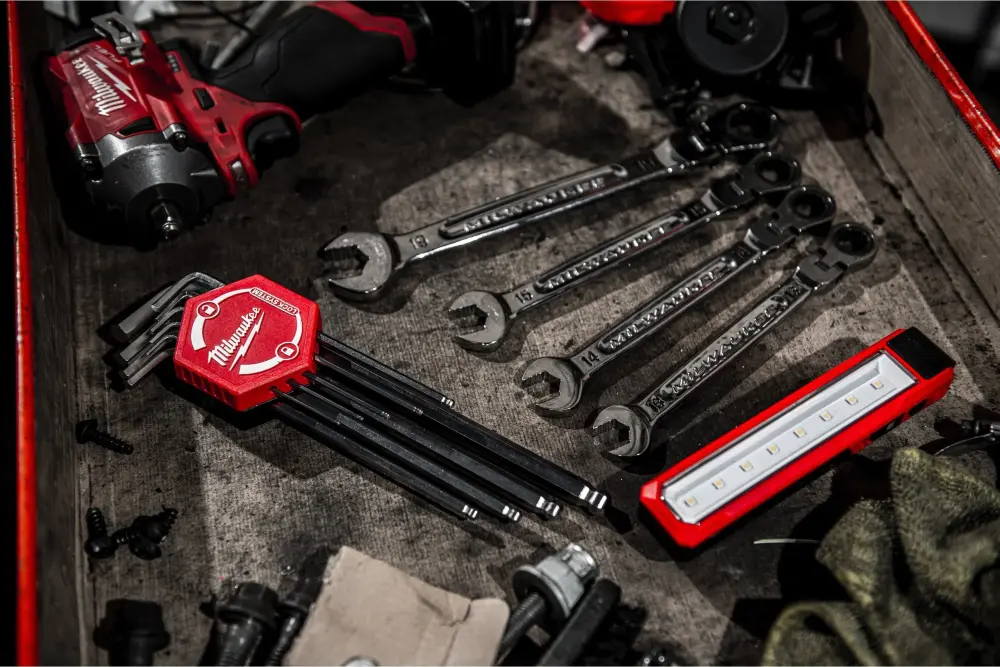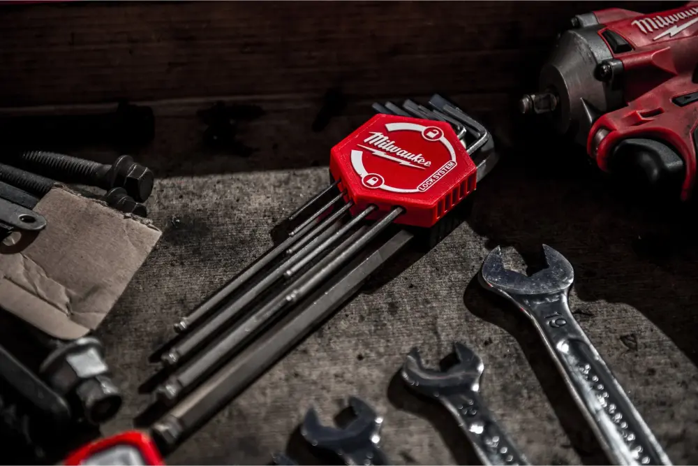 El set de 9 llaves Allen con extremo esférico de Milwaukee presenta una solución completa y ergonómica para trabajos de montaje, mantenimiento, mecánica o bricolaje. Gracias a su diseño con “bola” en la punta, permite acceder a tornillos hexagonales con un ángulo de hasta unos 30°, ideal para espacios de difícil acceso. El soporte giratorio compacto facilita tanto el transporte como la organización de las llaves.