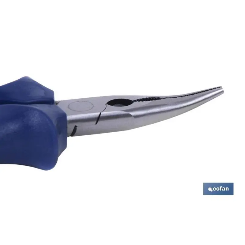 Alicates de punta curva de extenso rendimiento provisto de corte robustos yconfeccionados en acero de doble temple con una extrema dureza para elagarre y el corte. Medidas en 160 y 200mmEspecificaciones