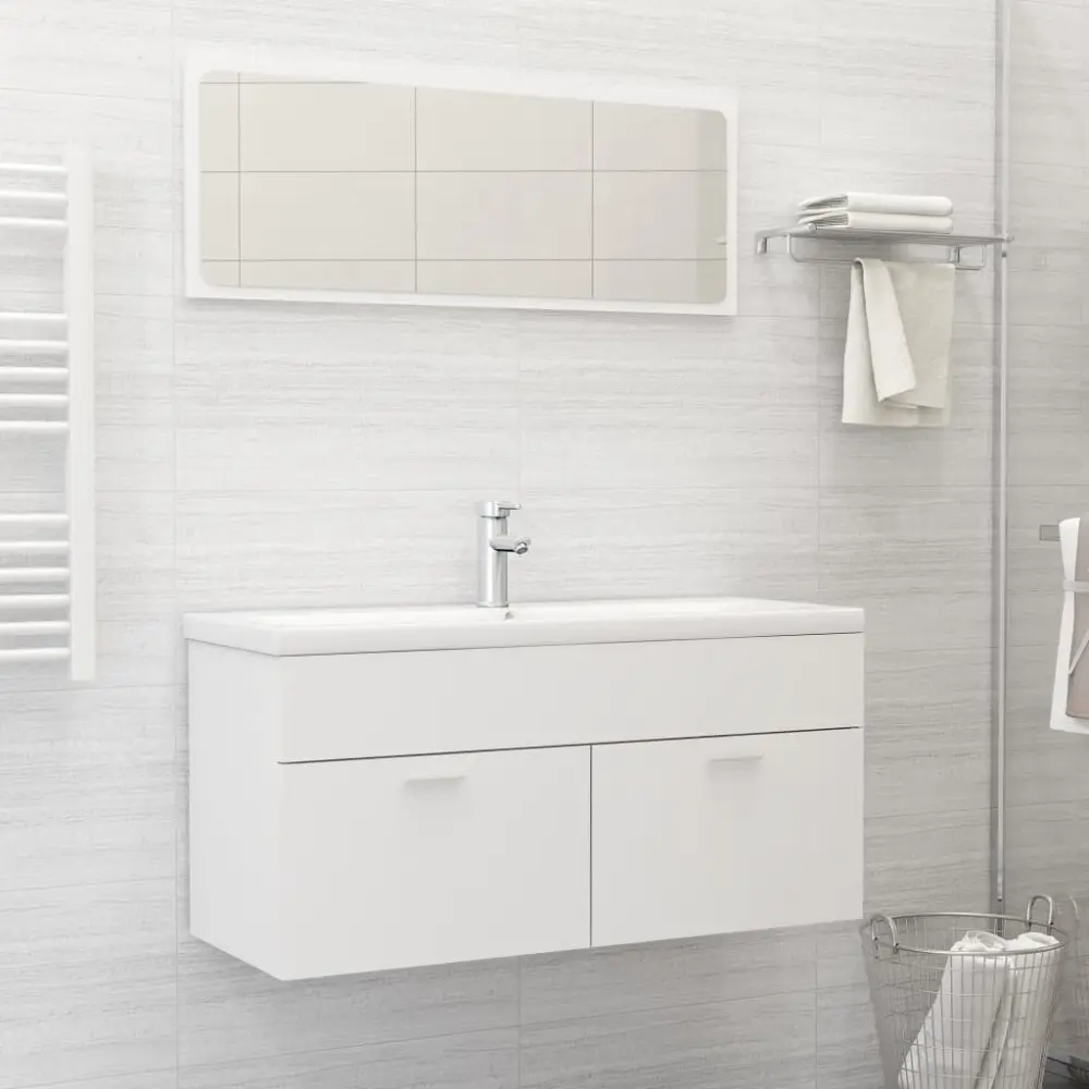vidaXL juego de muebles de baño madera de ingeniería ● Sistema de cierre magnético para las puertas ● Color uniforme en toda la superficie visible ▶ Consigue un baño más funcional