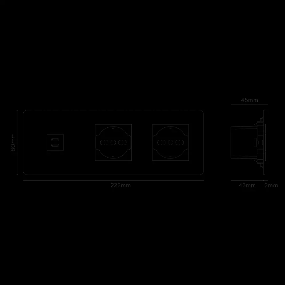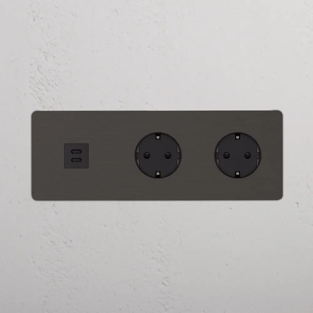 Este enchufe mixto en marco triple combina un USB-C y dos enchufes Schuko en un solo marco.