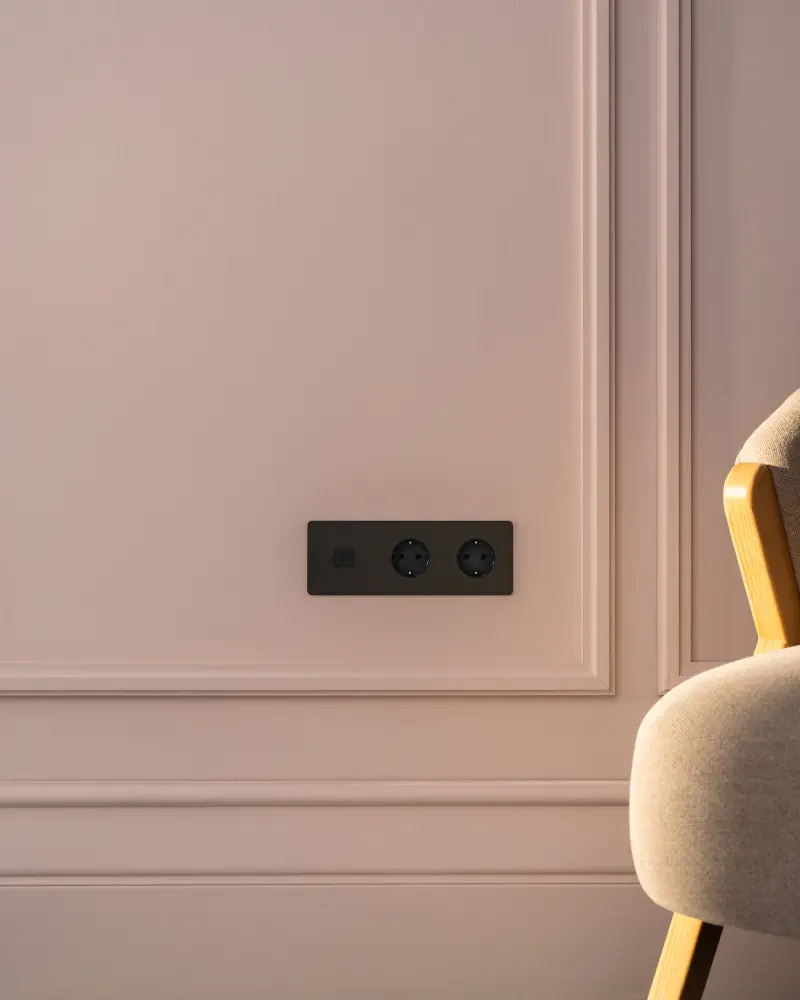 Las inserciones de plástico de bajo brillo y ligeramente texturizadas alrededor de los enchufes están disponibles en negro.