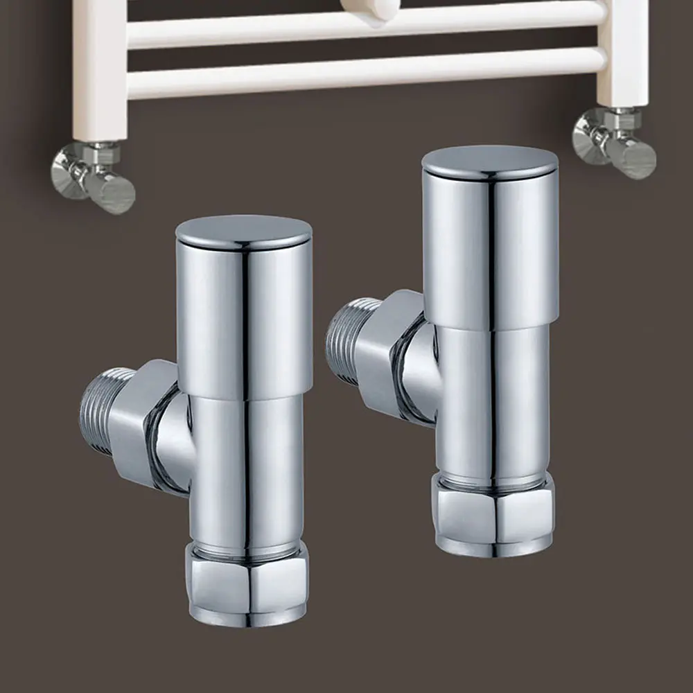 Uso juegos de 2 válvulas para la instalación de secatoallas para red de calefacción de agua caliente. Acabado en cromo brillo y fabricadas en latón. Son complemento indispensable para radiadores secatoallas de 16 o 26 tubos. Medida de la conexión 1/2 pulgadas.