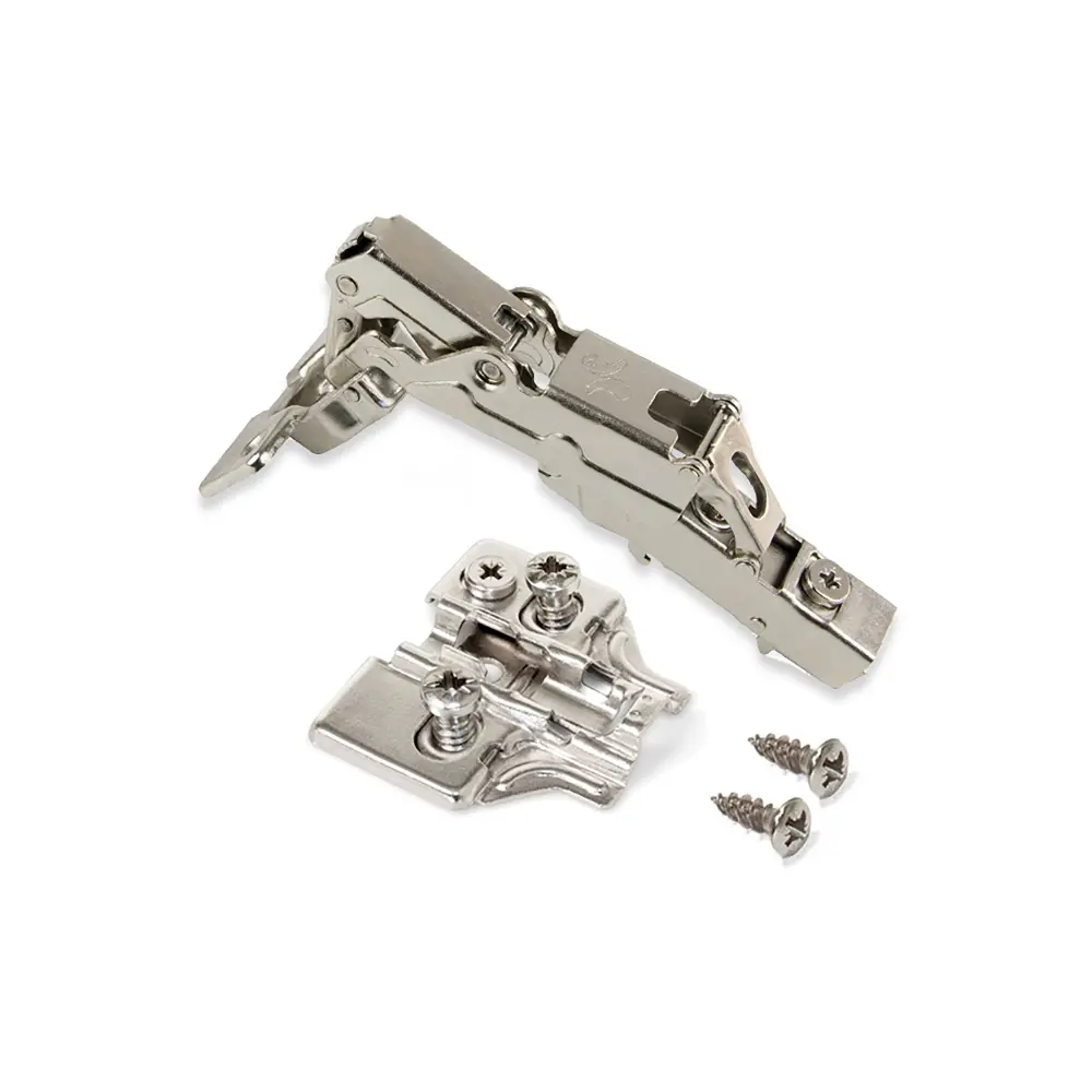 Bisagra recta x91.Fijación para atornillar.Cazoleta con diámetro de 35 mm.Apertura 165º.Pistón amortiguador para el cierre mullido de la puerta.Sistema automático de montaje en clip de la bisagra al suplemento.Grosor de la puerta de 14 a 26 mm.Regulable tridimensionalmente.Rango de taladrado de la cazoleta d = 3 ~ 7 mm.Regulación en profundidad mediante excéntrica.Suplemento x91.Fijación con tornillo euro d. 5 x 12 mm.Altura 0 mm.Con regulación excéntrica.Incluye los tornillos necesarios para el montaje.Fabricados en acero niquelado.Especificaciones