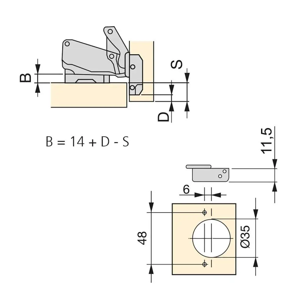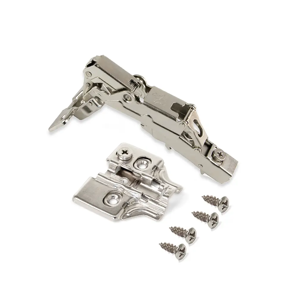 Bisagra recta x91.Fijación para atornillar.Cazoleta con diámetro de 35 mm.Apertura 165º.Pistón amortiguador para el cierre mullido de la puerta.Sistema automático de montaje en clip de la bisagra al suplemento.Grosor de la puerta de 14 a 26 mm.Regulable tridimensionalmente.Rango de taladrado de la cazoleta d = 3 ~ 7 mm.Regulación en profundidad mediante excéntrica.Suplemento x91.Altura 0 mm.Con regulación excéntrica.Incluye los tornillos necesarios para el montaje.Fabricados en acero niquelado.Especificaciones