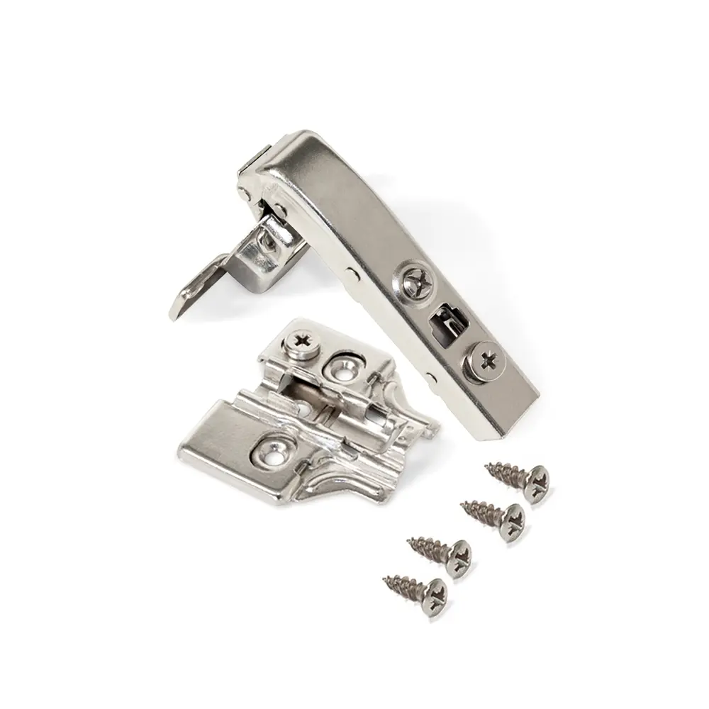 Bisagra x91 con brazo angular 90º.Fijación para atornillar.Cazoleta con diámetro de 35 mm.Apertura 110º.Pistón amortiguador para el cierre delicado de la puerta.Sistema automático de montaje en clip de la bisagra al suplemento.Grosor de la puerta de 14 a 24 mm.Regulable tridimensionalmente.Rango de taladrado de la cazoleta d = 3 ~ 7 mm.Muelle tanto en cierre como en apertura.Suplemento x91.Fijación para atornillar.Altura 0 mm.Con regulación excéntrica.Incluye los tornillos necesarios para el montaje.Fabricados en acero niquelado.Especificaciones