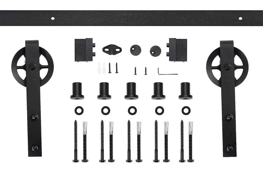 Este kit de herrajes de alta calidad para puertas de granero de madera es seguro y fácil de configurar. Convence por su durabilidad y su funcionamiento suave y silencioso. Todos nuestros kits de herrajes están «colgados por arriba», lo que significa que la puerta se cuelga en el riel superior con dos soportes para ruedas; todo el peso lo llevan los soportes, lo que facilita el movimiento de la puerta.