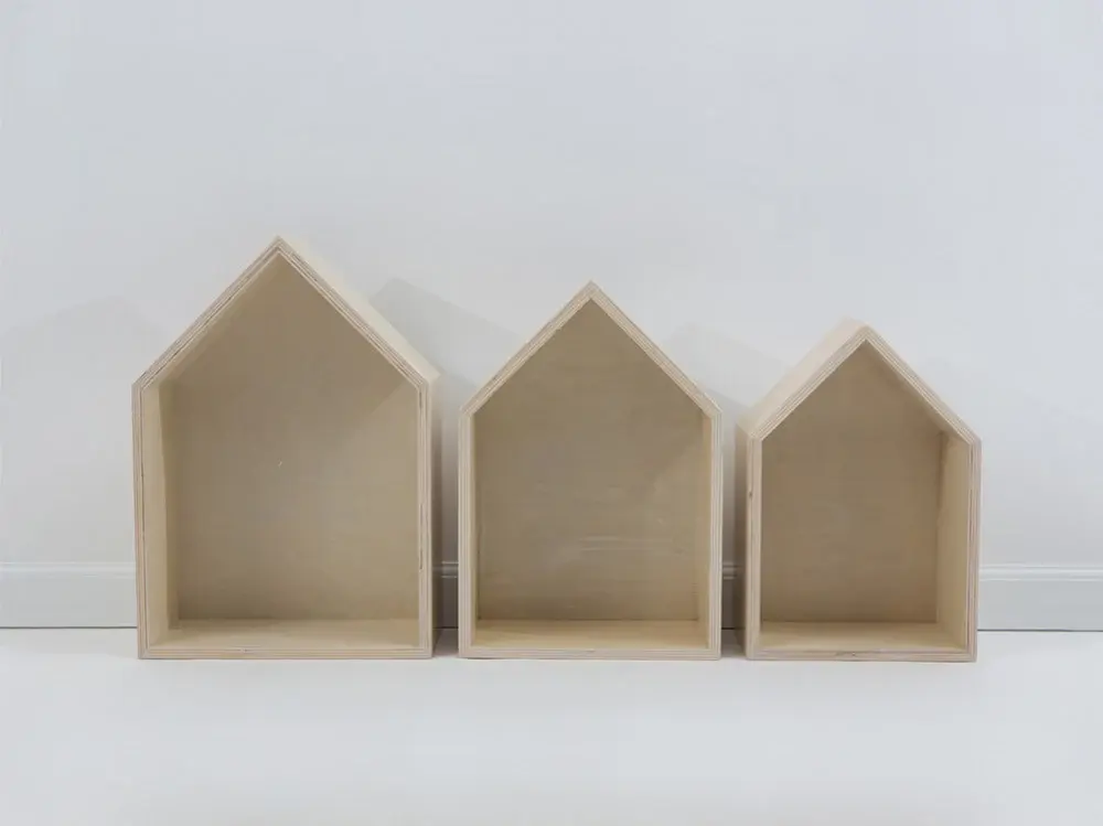 Set 3 Repisas Casita | Madera Natural