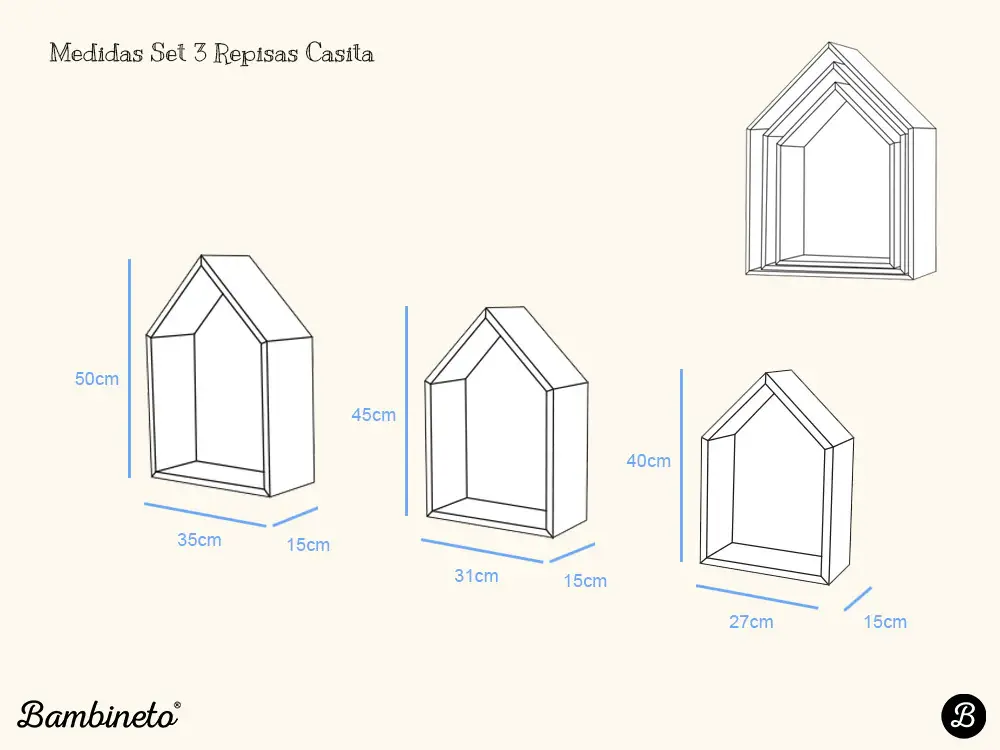 - Medida Casita 3: 40 x 27 x 15 cm