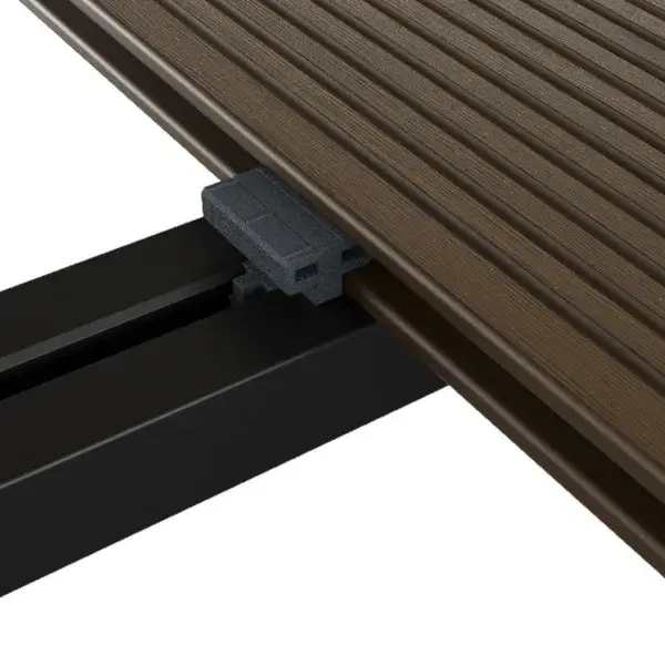 Lama de terraza color marrón chocolate de la serie Neva, con longitud 220 x ancho 145 mm y espesor 21 mm y de sencillo montaje mediante sistema clic.