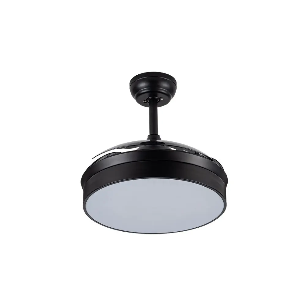 Ventilador DC serie CALA en color NEGRO con tres aspas DESPLEGABLES muy resistentes.Realizado en metálico, ABS y policarbonato, con diseño moderno y elegante.Tiene seis velocidades ajustables. Motor DC.Tecnología LED integrada con una potencia de 48W, 3 TEMPERATURAS SELECCIONABLES DE LUZ (3000-4000-6000K), luz cálida, blanco natural y blanco frío, y 4800 lúmenes.Control de aire verano o invierno.Su medida es de 39/49×41 centímetros con las aspas plegadas y de 39/49×91 centímetros con las aspas desplegadas, con DOS MEDIDAS DE TIJA incluidas para colocar a distintas alturas.Mando a distancia INCLUIDO con MEMORIA DE COLOR incorporada y TEMPORIZADOR 1/2/4/8 H.Modelo disponible en dos tamaños y en color blanco, negro, níquel y cuero. Número de aspas:3Número de velocidades ajustables:6Control de aire para verano o inviernoMedida del diámetro (cm. ):91Tipo de motor: Motor DCTemporizador ventilador:1H < 8HMaterial Motor: Metal / PolicarbonatoMaterial Aspas: ABSColor Motor:NegroColor Aspas:FumeInc