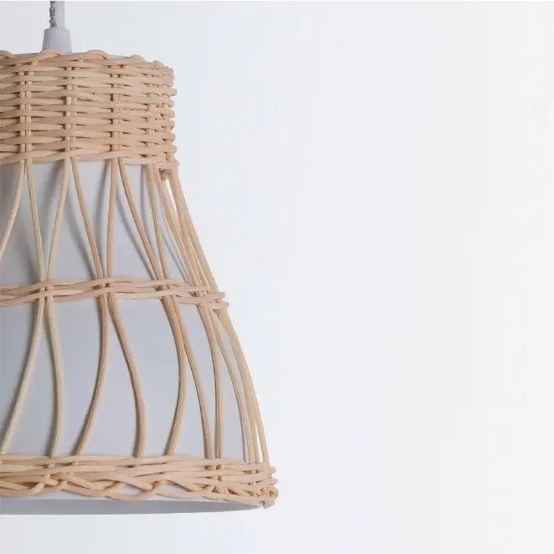 La lámpara de techo colgante modelo Kumiko de la marca 7hSevenOn Deco se caracteriza por su forma cónica y por estar diseñada en aluminio de color blanco con detalles en ratán con acabado natural. Está indicada para uso interior y quedará genial en salones, comedores o dormitorios. Su diseño vanguardista y su aire natural la convierten en una pieza única que combinará a la perfección junto a cualquier estilo decorativo. Es válida para bombillas de casquillo E27 con una potencia máxima de 40W (bombilla no incluida).