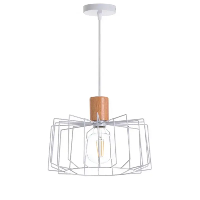 La lámpara de techo colgante modelo Wielun de la marca 7hSevenOn Deco se caracteriza por su tulipa en forma de jaula de color blanco. Está fabricada en hierro y madera natural, lo que la hace muy ligera y resistente. Es ideal para estancias de tu hogar donde quieras obtener un estilo moderno y sin procesar. Su pantalla, singular y diáfana, permite una iluminación original y sostenible. Es válida para bombillas de casquillo E27 (bombilla no incluida). Su uso es exclusivo para interiores y cuenta con protección IP20.