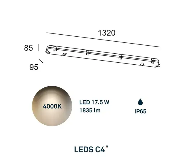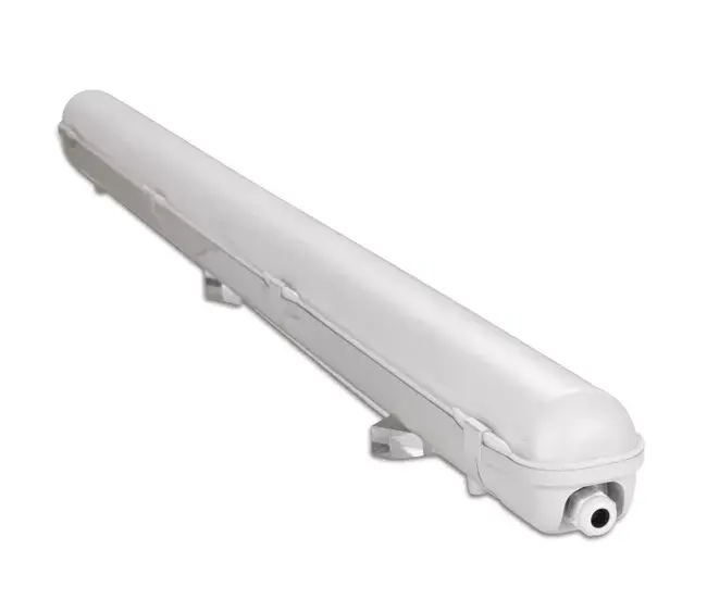 Incluye 2 salidas de cable para facilitar la instalación en cadena. Material de la estructura: Policarbonato. Acabado estructura: Gris. Material del difusor: Policarbonato. Acabado difusor: Semitransparente. Protección contra los rayos ultravioleta. Garantía: 2 Años.