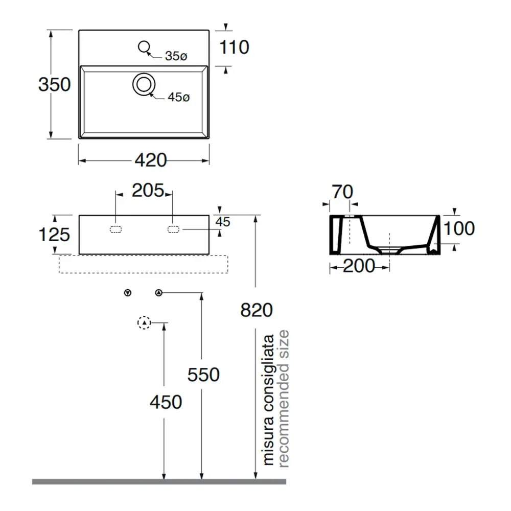 - Tipo: Lavabo de apoyo (también apto para instalación suspendida).