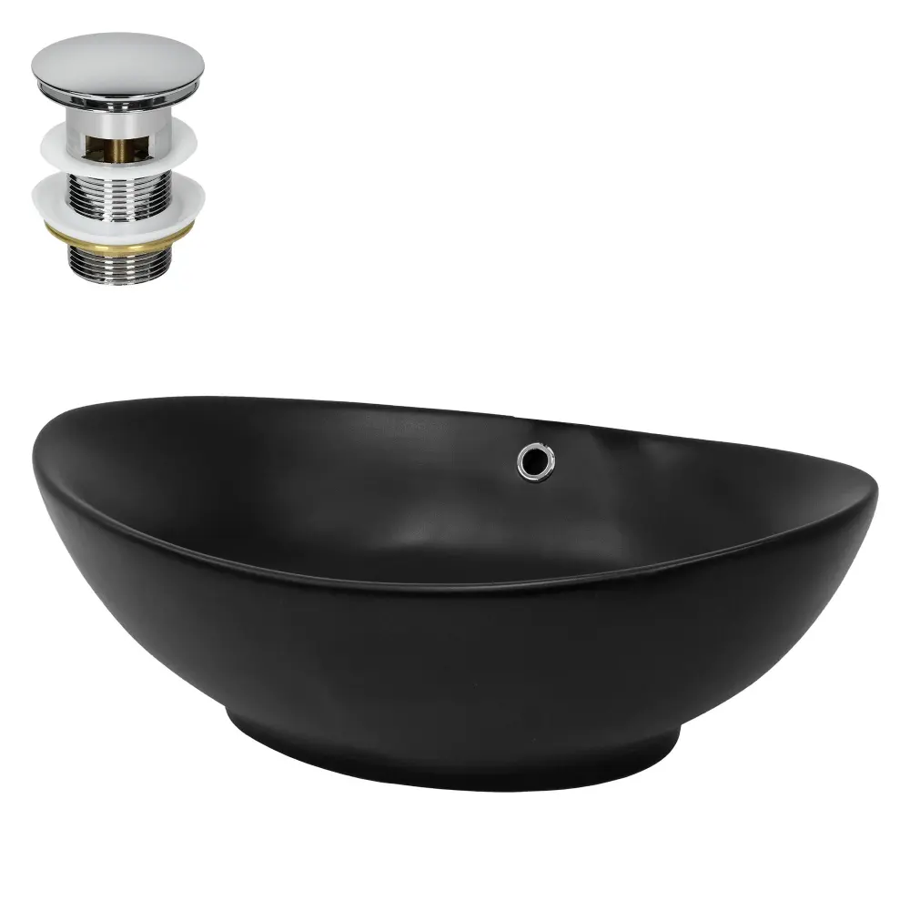 Lavabo incl. Desagüe cerámica negra ● Material que no se decolora con el uso frecuente de jabones ● Fabricado con materiales resistentes a la humedad y al moho ▶ Disfruta de un baño de lujo