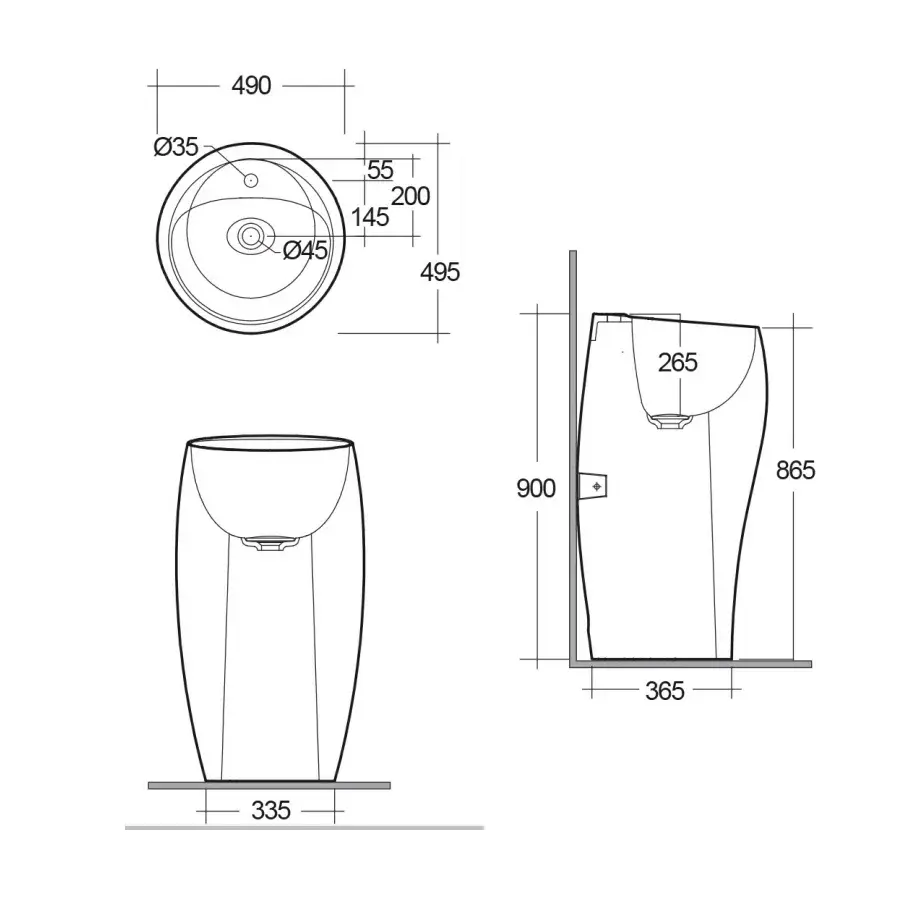 - Tipo: Lavabo suspendido (monobloque independiente – preparado para desagüe al suelo)