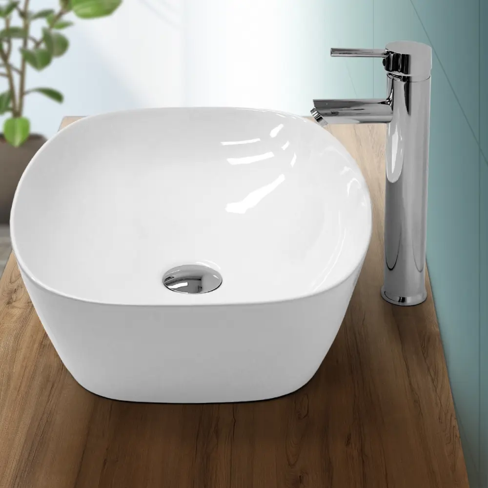 Lavabo sobre encimera – blanco ecd germany ✓ Forma rectangular que aprovecha esquinas de baño ✓ Superficie tratada contra la cal y el sarro ► Transforma tu baño con un lavabo elegante