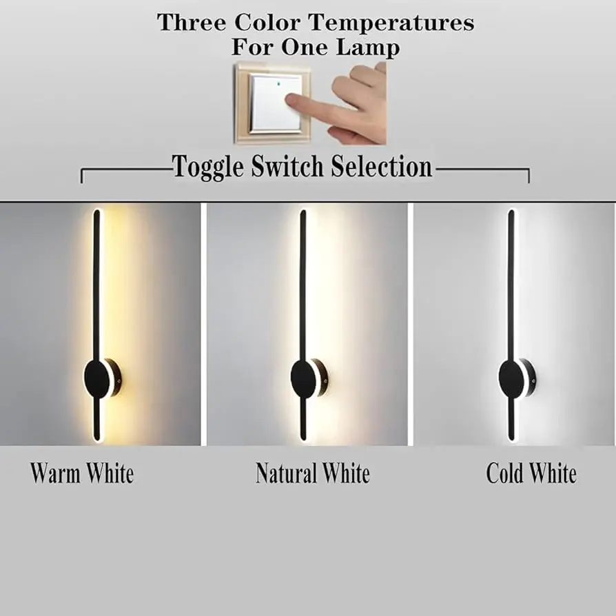 Este aplique cuenta con tres tonos de luz integrados: fría, neutra y cálida, que se pueden ajustar fácilmente desde el interruptor de la luz, adaptándose a cada momento del día o ambiente deseado. Fabricado con materiales de metal y acrílico, garantiza resistencia y un diseño de alta calidad.