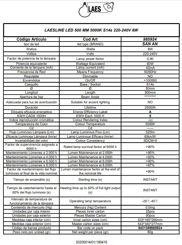 * Luminosidad: 500 lm
