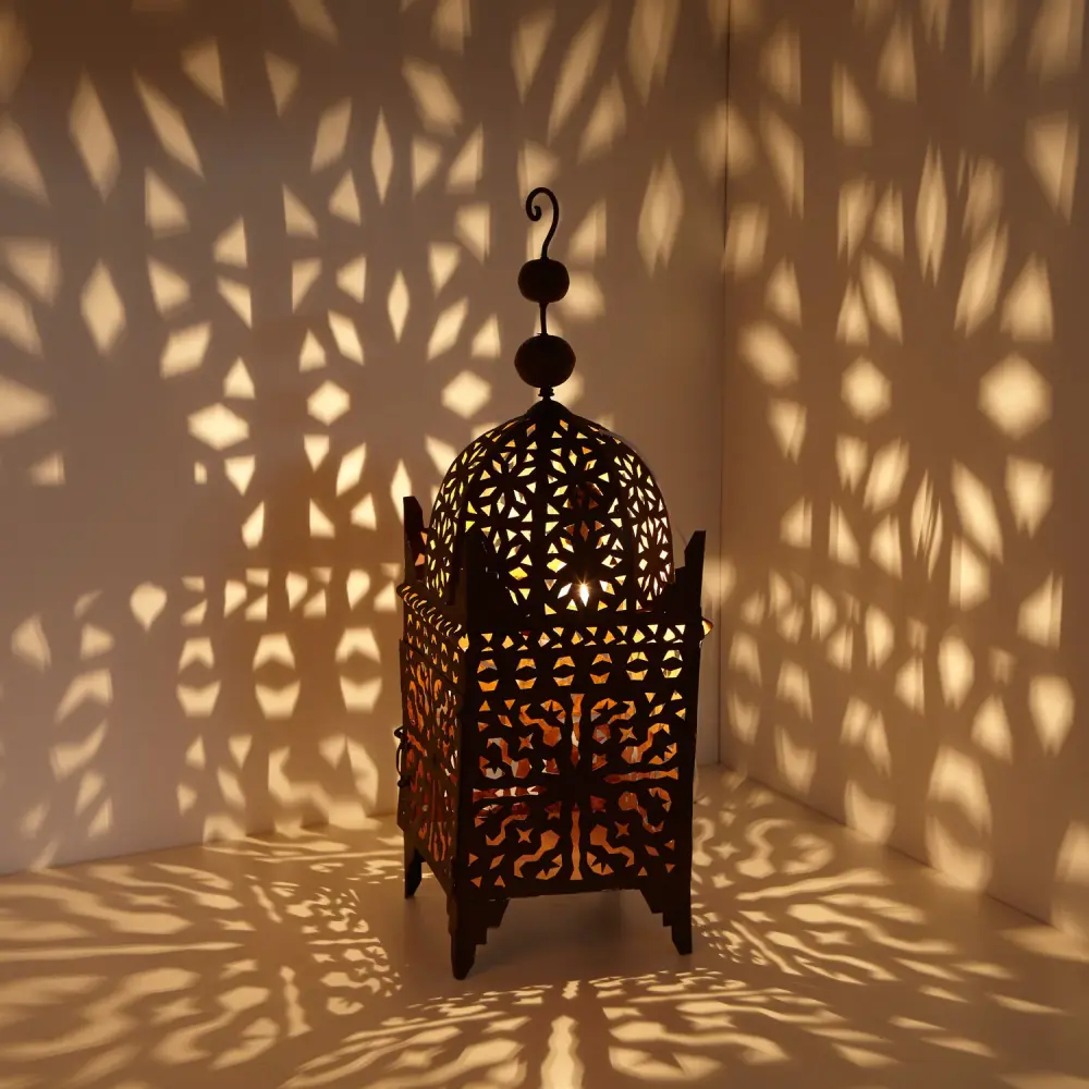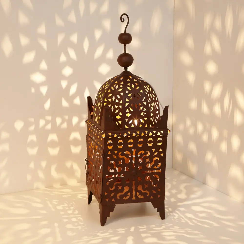 «Las linternas marroquíes de hierro de este tipo crean un juego de luces y sombras único. Gracias a su estructura en forma de minarete y a los innumerables recortes, la luz se refracta en muchos pequeños puntos y crea una atmósfera de ensueño».