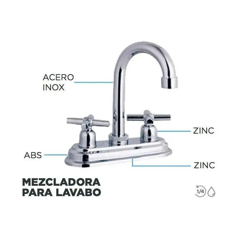 MEZCLADORA PARA LAVABO CARACTERISTICAS: Cuerpo De Cinc Manerales De Zinc Cubierta Plástica Cuello De Acero Inoxidable Cartucho 1/4 De Vuelta