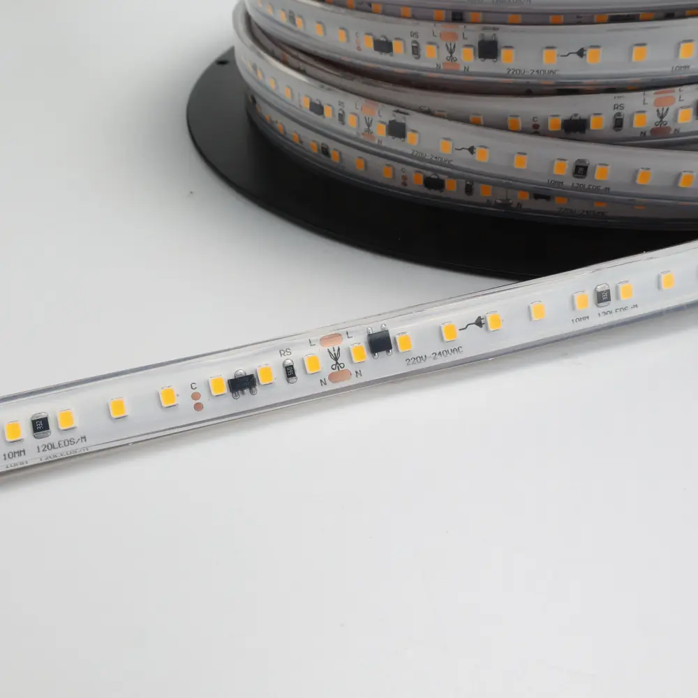 La Tira LED 220V IP67 de 20 metros ofrece una potente iluminación tanto para interiores como exteriores, sin necesidad de una fuente de alimentación adicional. Con tecnología LED de última generación, proporciona una luz brillante y uniforme, con tres opciones de temperatura de color: blanco cálido, blanco neutro y blanco frío.Destacando por su alta potencia de 300W (15W/metro), esta tira LED emite una intensa luminosidad de 34500 lúmenes (1725 lm/metro), gracias a sus 2400 chips LED SMD2835 con una densidad de 120 chips/metro. Con un ángulo de apertura de 180° y un índice de reproducción cromática (CRI>90), ofrece una representación fiel de los colores.Su diseño práctico facilita la instalación y manipulación, con conectores estancos para uso exterior y cortes cada 100mm. La tira viene premontada en un rollo de 20 metros, con autoadhesivo 3M para una sencillo fijación. Actúa personalmente a 220V, sin necesidad de drivers o transformadores.Perfecto para iluminación exterior, vitrinas