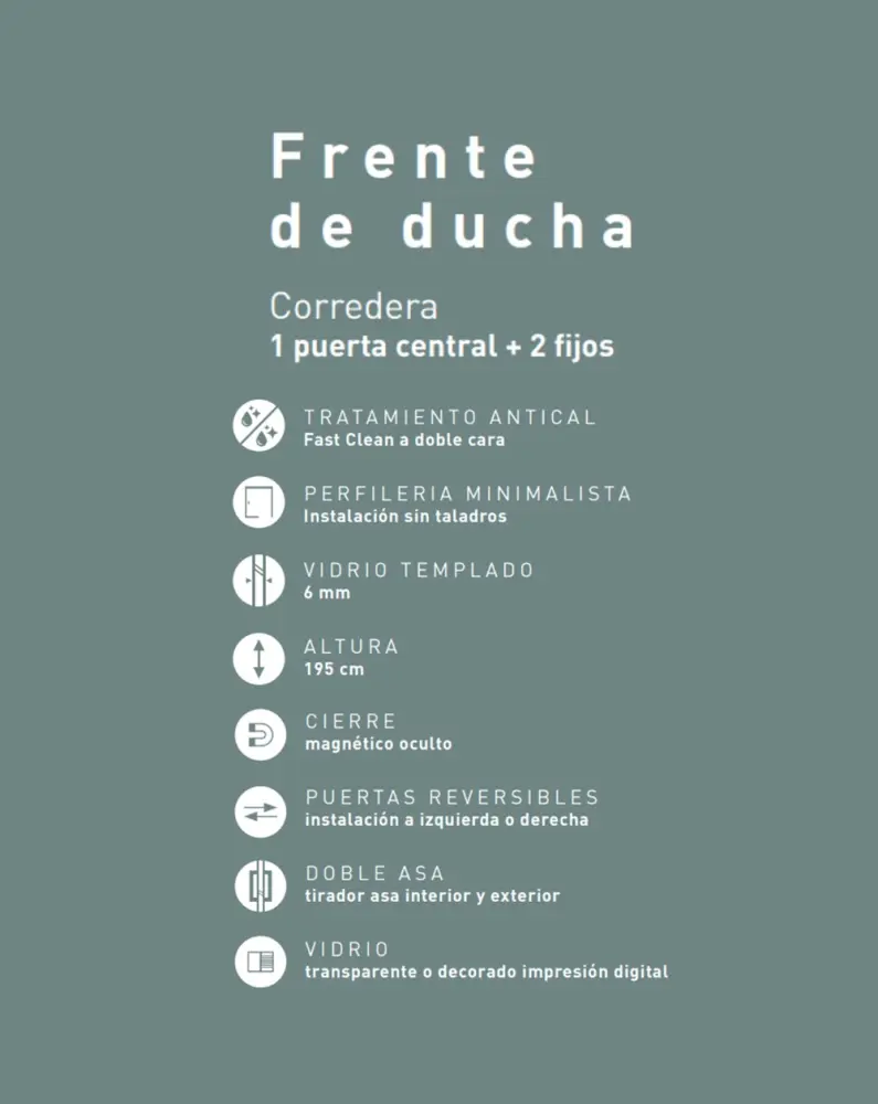 Mampara de Ducha Frontal corredera 2 puertas + 2 fijos Patricia