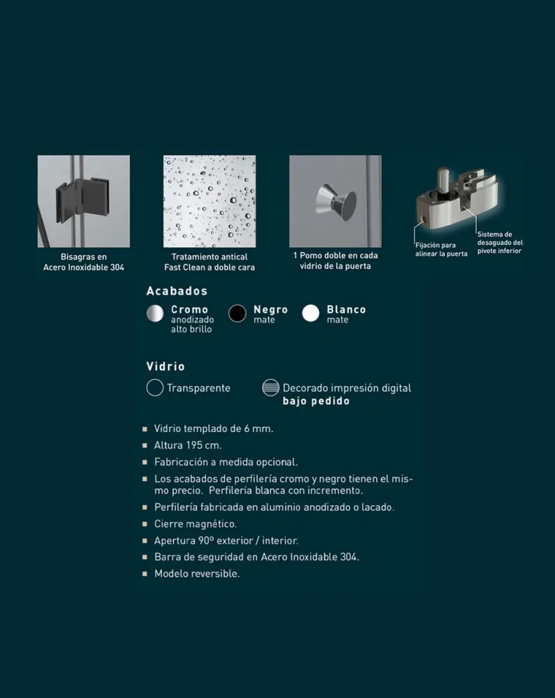 Mampara Ducha 2 Puertas Abatibles | Cabina Ducha | Puerta 85 + Puerta 90cm | Cristal 6mm con Antical Transparente | Elevado 195cm | BlancoEspecificaciones