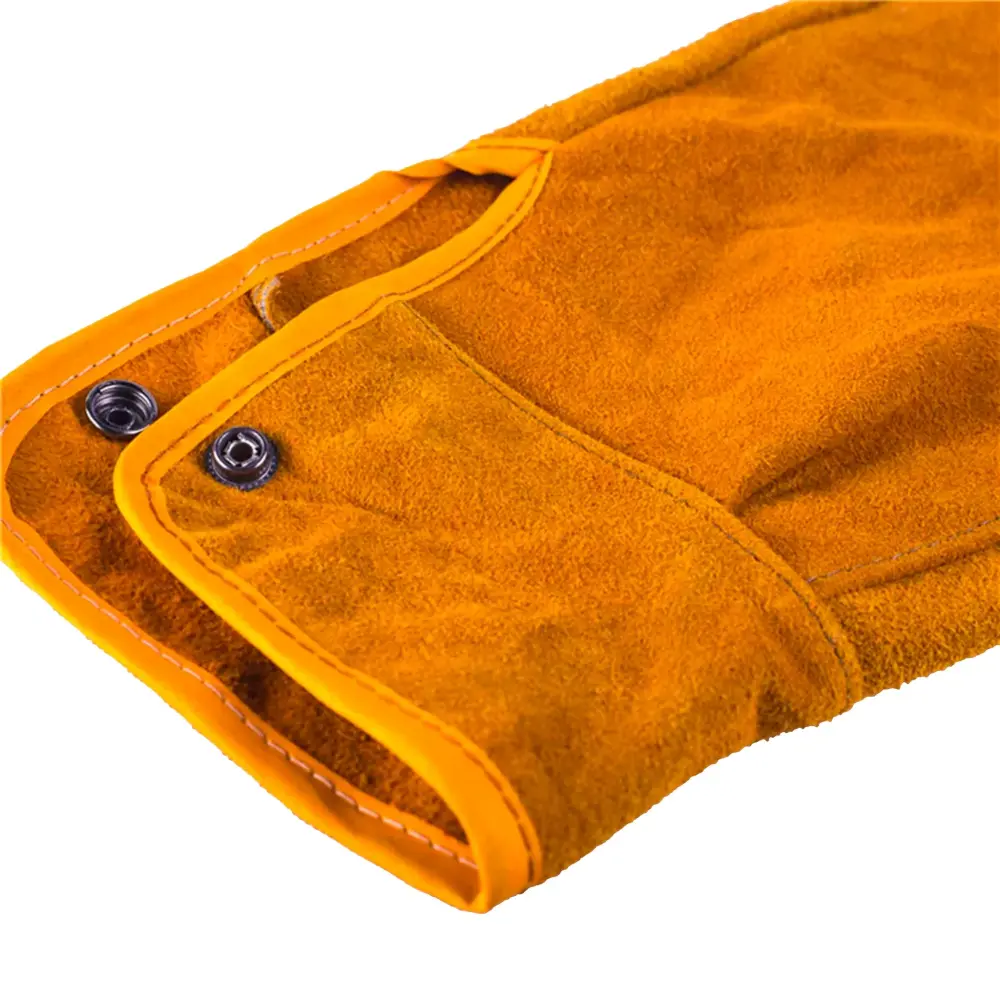 Manga de carnaza para la protección de brazos y hombros, adecuadas para el manejo de elementos que puedan ocasionar fricción o desgaste de la piel, manejo de elementos calientes en forma intermitente, en trabajos con riesgo medio de punzadura, corte y abrasión, y en soldadura para evitar chispas en la ropa o cuerpo.