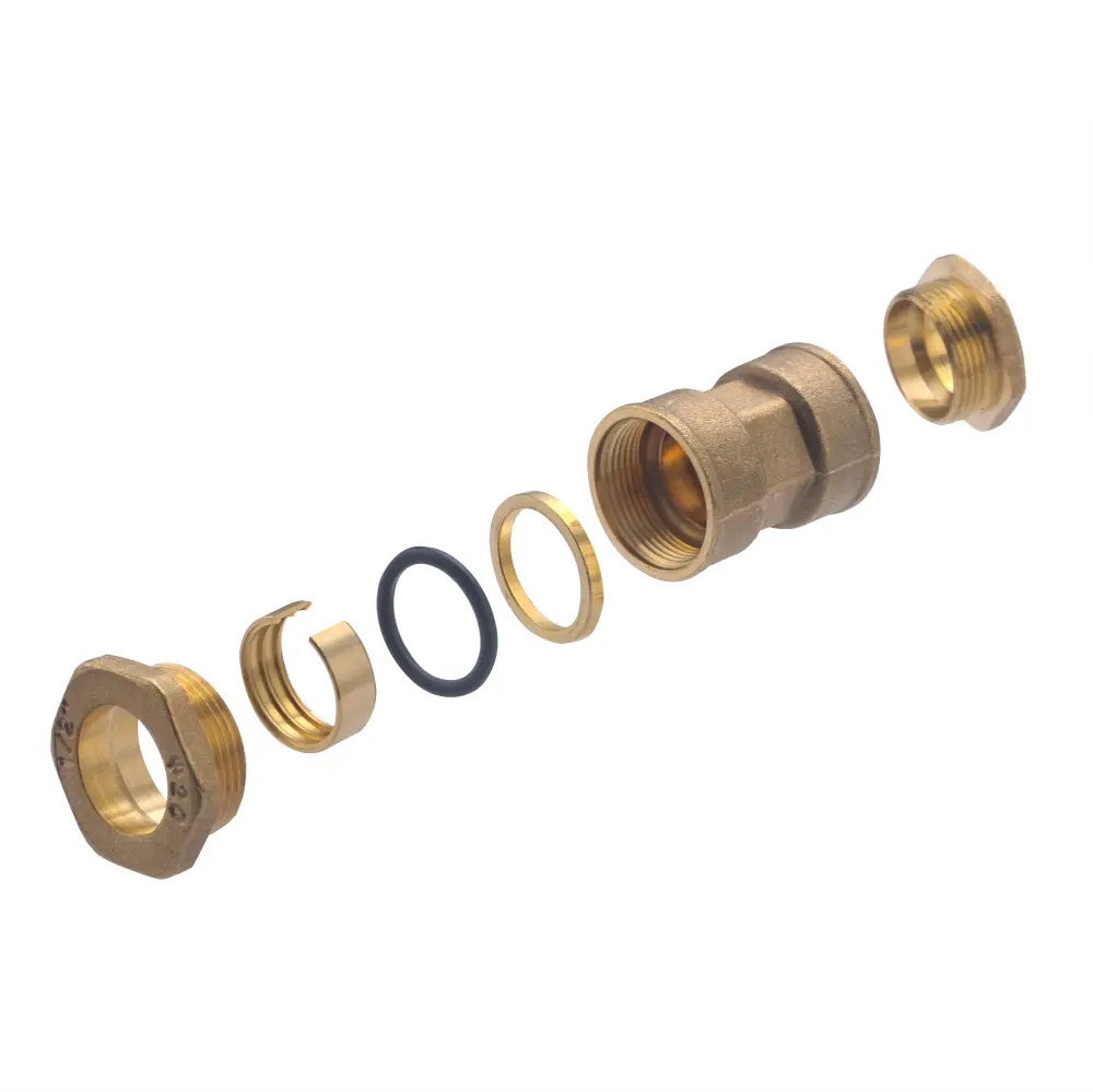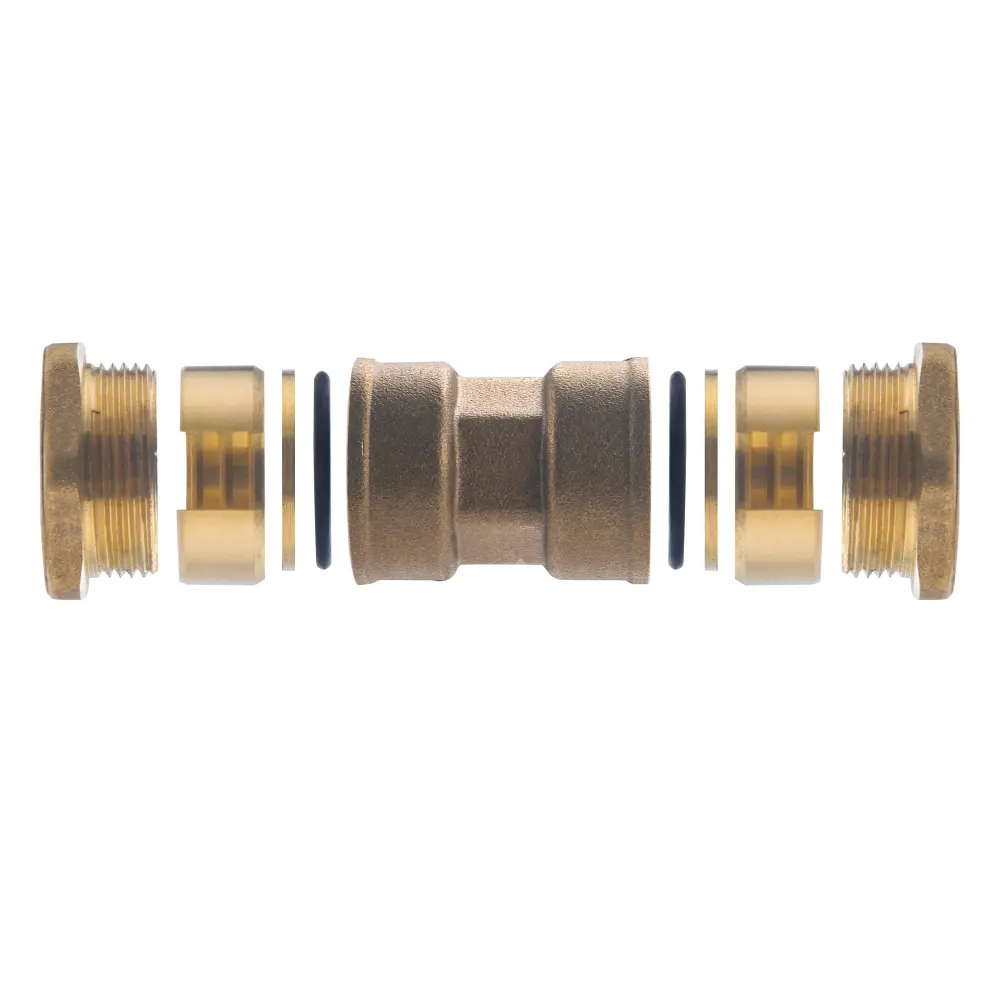 racor de latón para tubo de polietileno, red enterrada antes del contador. Sujeción interna.