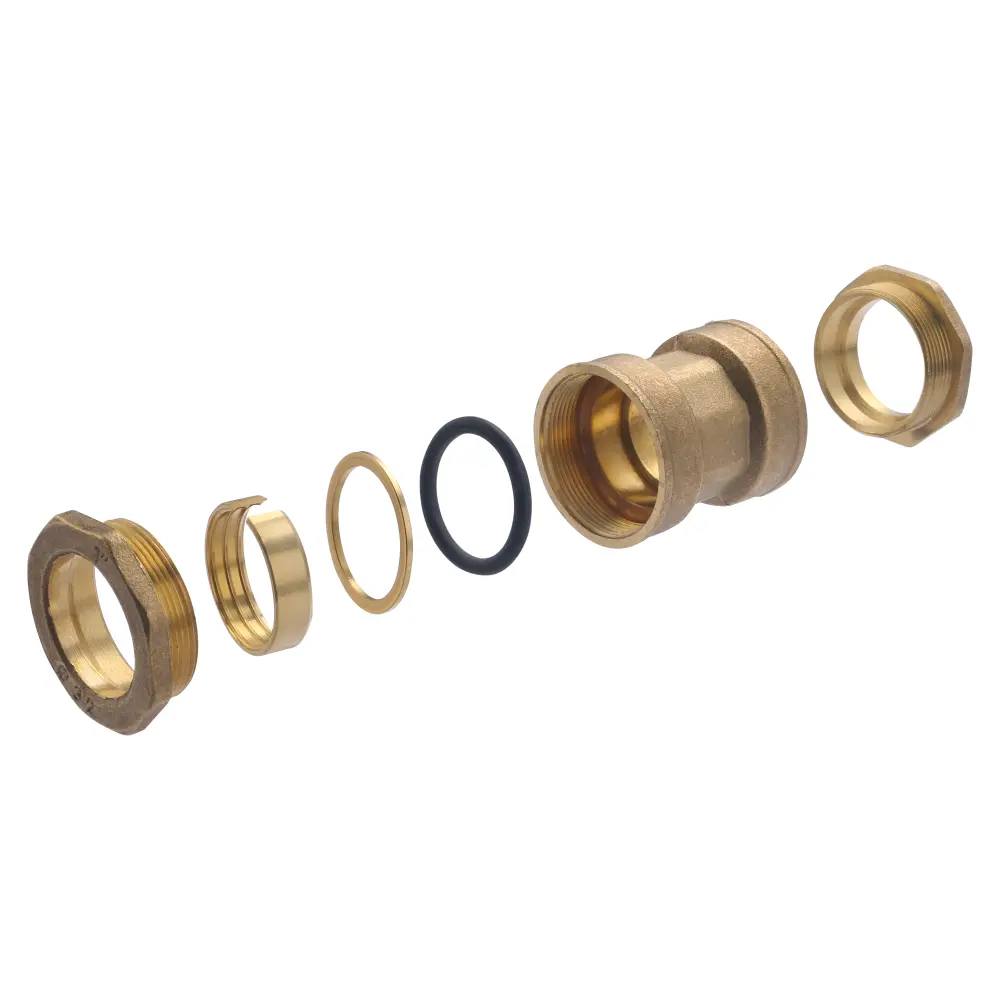 racor de latón que permite ejecutar un empalme entre 2 tubos de pe, red enterrada antes del contador. Sujeción externa