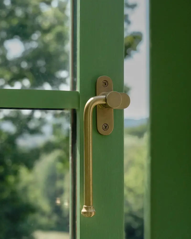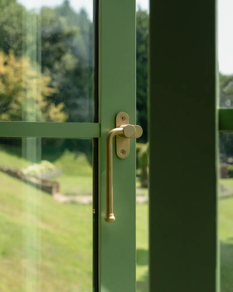 Diseñamos nuestras manijas Southbank para usar en ventanas abatibles de madera.