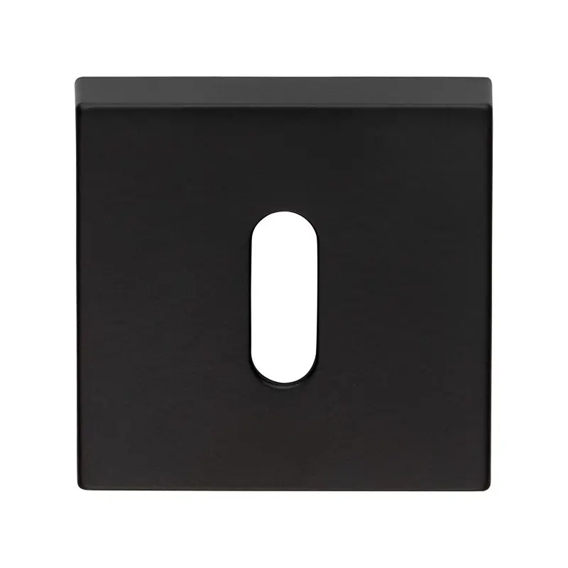 Tirador de Aleación cobre, lote de 12, más sencillo de montar gracias al clipaje en roseta 019 50×50 mm y la plantilla de instalación, fijación mediante tornillo invisible para madera, distancia entre ejes 8 mm, con resorte de retorno de palanca, roseta cuadrada 50×50 L ojo de cerradura, fijación con tornillos invisibles para madera, acabado negro de tacto sedoso de alta resistencia, anti huellas, para puerta de interior de 35-45mm. Fabricado en Italia y seleccionado por excelencia por HardwarExchange. Seguridad de 5 años.Especificaciones