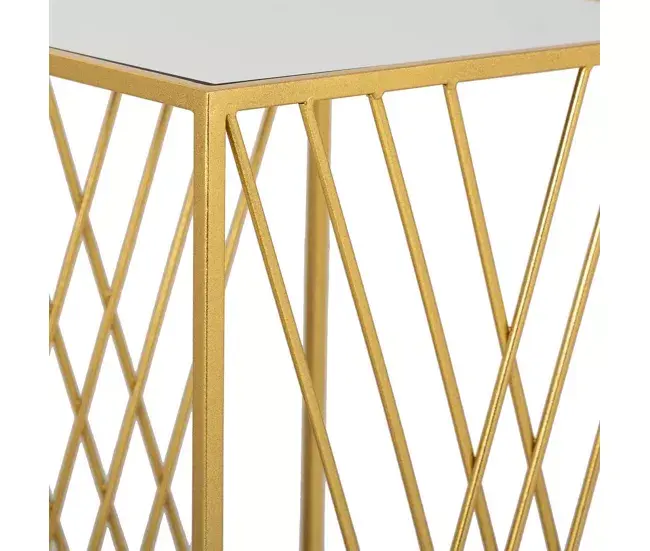 Mesa esquinera cuadrada de metal dorado