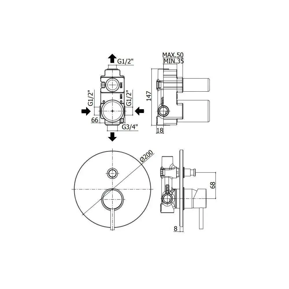 Mezclador de ducha empotrado serie Stick modelo SK015ST 2 usos