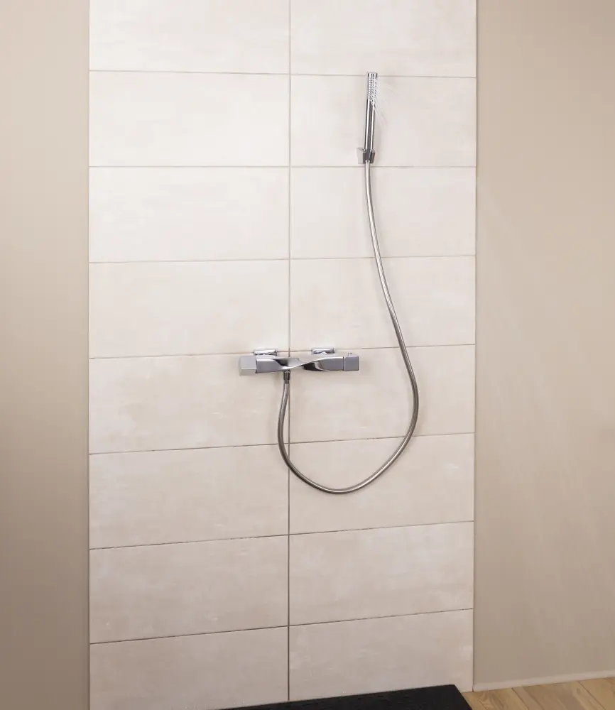 Cuerpo de latónMontaje mural visible, distancia entre ejes de 150 mmSalida de ducha M (1/2 pulgada)Cartucho termostáticoDisco cerámico de cabeza de 1/2 vueltaBotón de seguridad anti-quemaduras a 38°CAjuste del caudalDos racores excéntricos (+/- 20 mm)Dos rosetas cromadasDos juntas de filtro de acero inoxidableSe remite con un maal de montajeAleación cobre utilizado en la fabricación conforme a la legislación vigente sobre materiales en contacto con agua destinada al consumo humano (Certificado de conformidad sanitaria emitido por un laboratorio acreditado por el Ministerio de Bienestar)Grifo garantizado por 5 años (las piezas de desgaste tienen una garantía de 1 año)Especificaciones