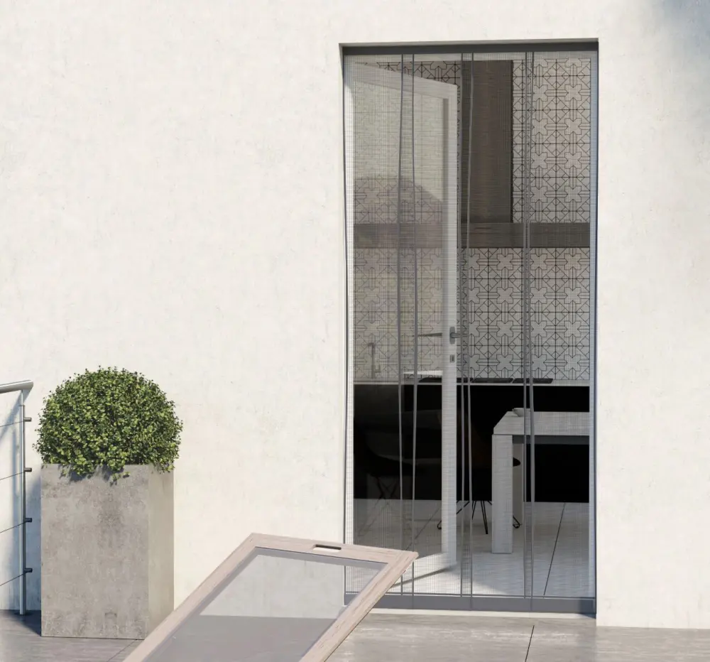 La mosquitera no está hecha para resistir los arañazos de perros y gatos, sin embargo, este tipo de Mosquitera para puerta, con sus tiras que se vuelven a colocar solas, es perfectamente adecuada para animales . Tus perros y gatos podrán moverse del interior al exterior y viceversa de forma independiente.