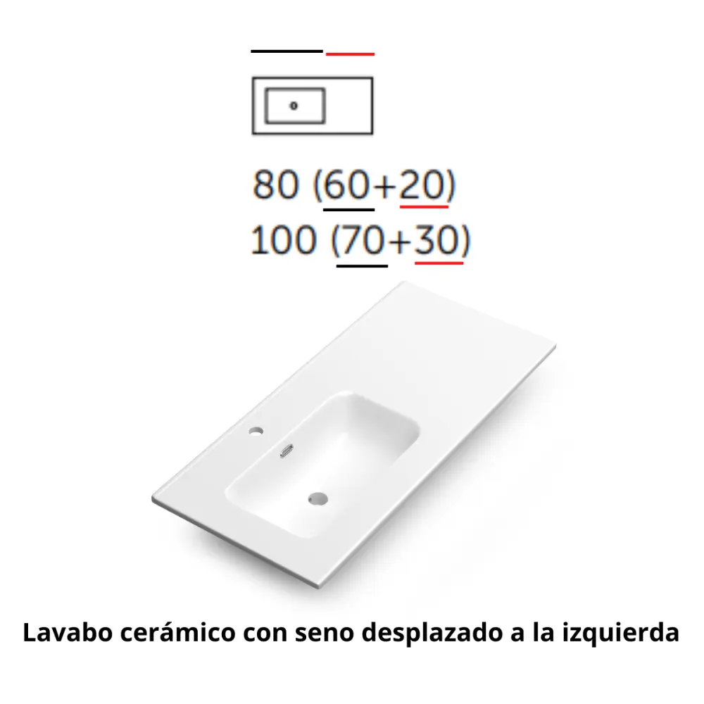 Conjunto Mueble de Baño al Suelo de 2 Cajonesy Puerta Lateral más Lavabo Cerámico con Seno Desplazado a Izquierda. Los Cajones cuenta con Acabado Textura y el