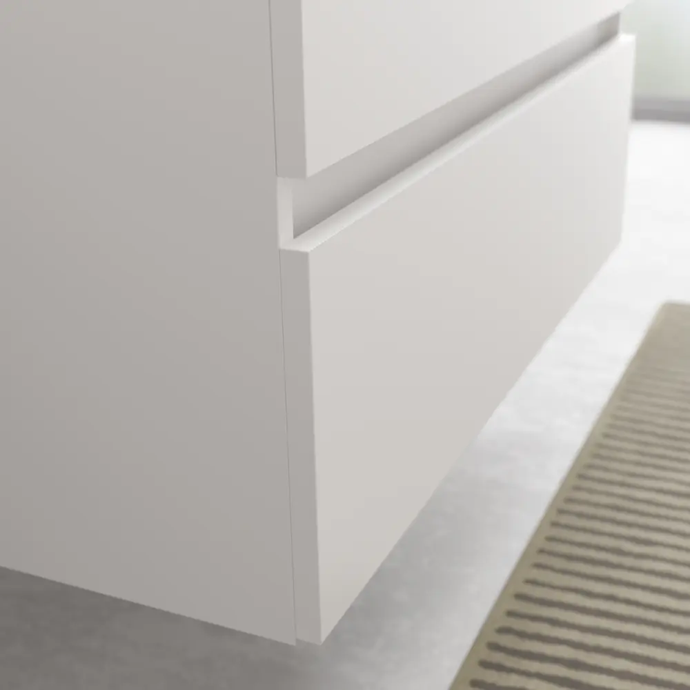 – Tirador tipo uñero integrado en el frente del mueble, en la parte superior de cada uno de los cajones para mayor ergonomía.
