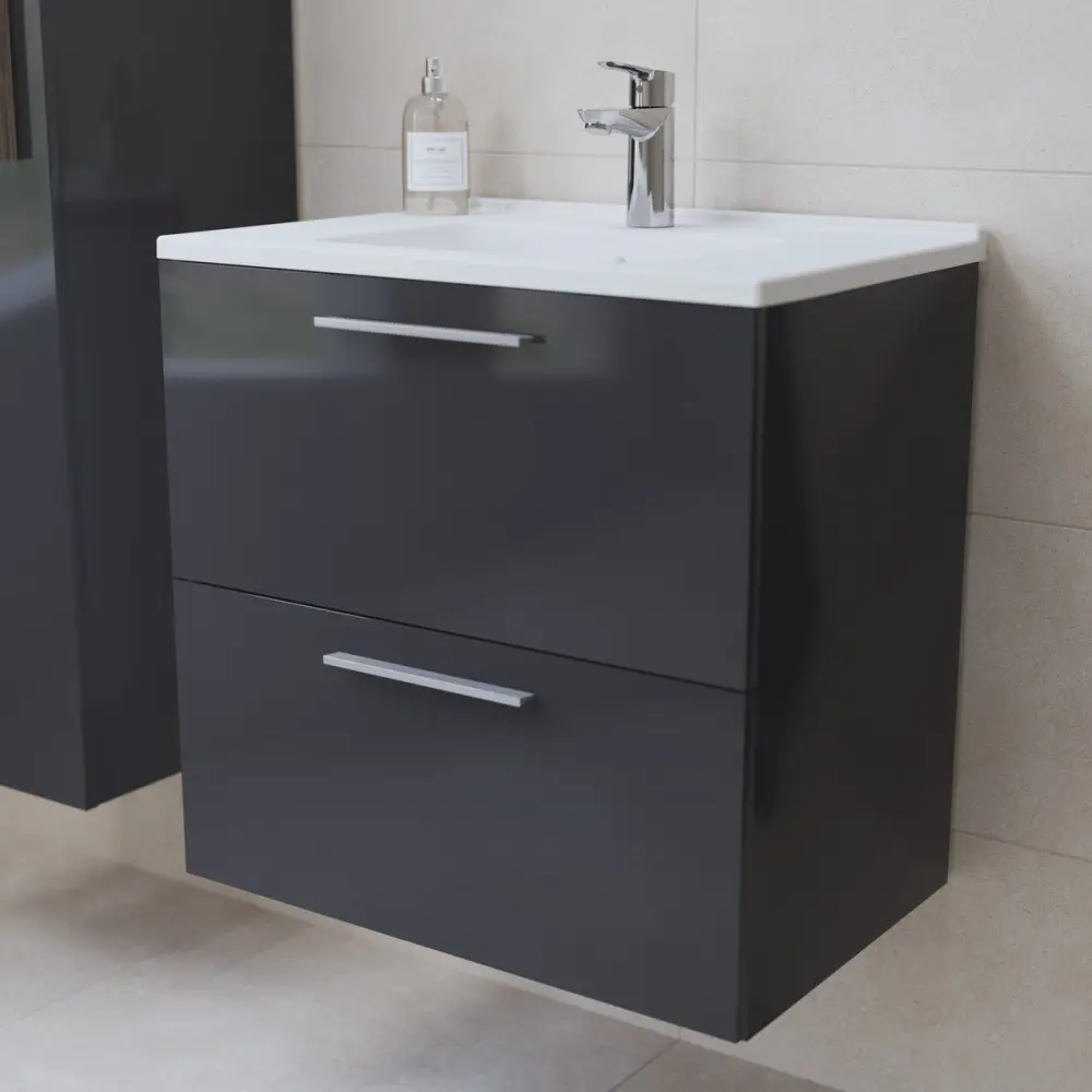 ✪ Mueble de baño Vitra Mia Set 59x61x39,5cm con espejo, lavabo e iluminación LED, gris Antracita (MIASET60D) tiene la ventaja de ser a la vez funcional y elegante en un estilo minimalista.