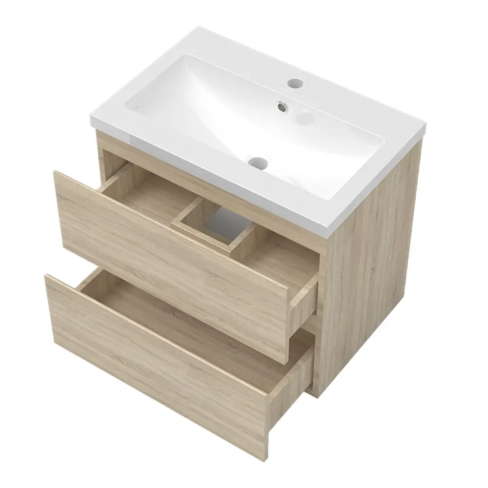Mueble de baño con lavabo, roble, cajón doble, ★ Incluye ventosas ajustables para una fijación más firme ★ Compatible con bañeras de acrílico, hierro fundido y fibra de vidrio → Disfruta de un baño de lujo