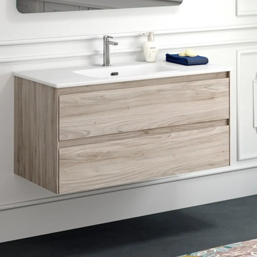Conjunto Mueble de Baño Suspendido de 2 Cajones más Lavabo Cerámico. Los Cajones cuenta con Acabado Textura y el Cajón Alta calidad cuenta con un Organizador y Salvasifón. El Cajón Inferior Cuenta con Máxima Volumen Almacenamiento. Los Frentes de los Cajones son Regulables en Horizontal y Vertical. Esto Cajones cuentan con las Mej